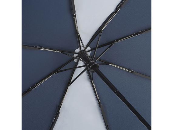 У этого зонта на двух диагональных клиньях и на отделке чехла имеется светоотражающее нанесение. Это обеспечивает дополнительную защиту в темное время суток. Мягкая пластиковая ручка с удобной кнопкой открытия и защита от порывов ветра делают зонт незаменимым аксессуаром.